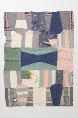 Funnily enough just after I posted about my blanket I was doing a bit of Anthropologie stalking and found these amazing blankets made from upcycled cardigans and jumpers.  For a brief moment I contemplated making something like this as the backing until I realised that that would be 100 times more work than just sewing my 12 squares together in the first place. Plus I don't own a sewing machine so sewing anything is a challenge requiring many hours of hand-sewing or some investigation about where I can "hire" a sewing-machine from.